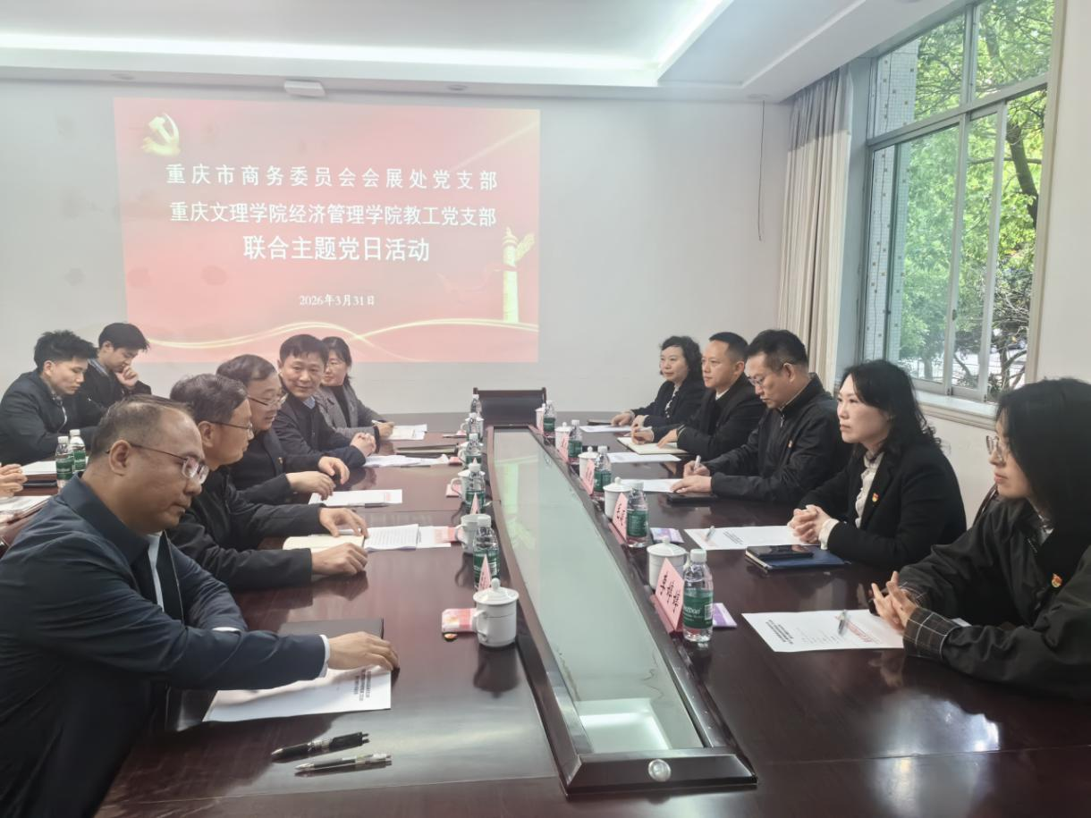 为深入学习贯彻习近平总书记关于树立和践行正确政绩观的重要论述,将正确政绩观转化为服务重庆“国际会展名城”建设的实际行动,2026年3月31日,市商务委会展处党支部主动走进重庆文理学院,与该校经济管理学院教工党支部开展“践行正确政绩观·共建国际会展名城”支部联建主题党日活动。市商务委副主任孙熙勇以普通党员身份参加活动。