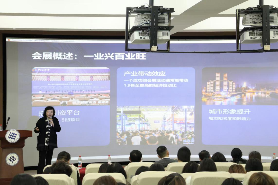 为将政绩观教育落到实处、服务产业需求,会展处一级调研员曹乃娣以“岁月筑展,初心致远”为主题,为会展专业学生开展专题授课。授课从会展行业发展历程、当前现状与未来趋势切入,结合西洽会、智博会、摩博会等典型案例与详实数据,深入解读会展产业对城市经济、产业融合、对外开放的重要支撑作用,引导学生树立正确职业观、事业观,将个人发展融入城市建设大局。活动中,10余名我市重点会展企业、行业协会代表专门录制寄语视频,分享从业经验、解读行业前景,为学生职业规划提供精准指导,搭建起校园与产业的沟通桥梁。