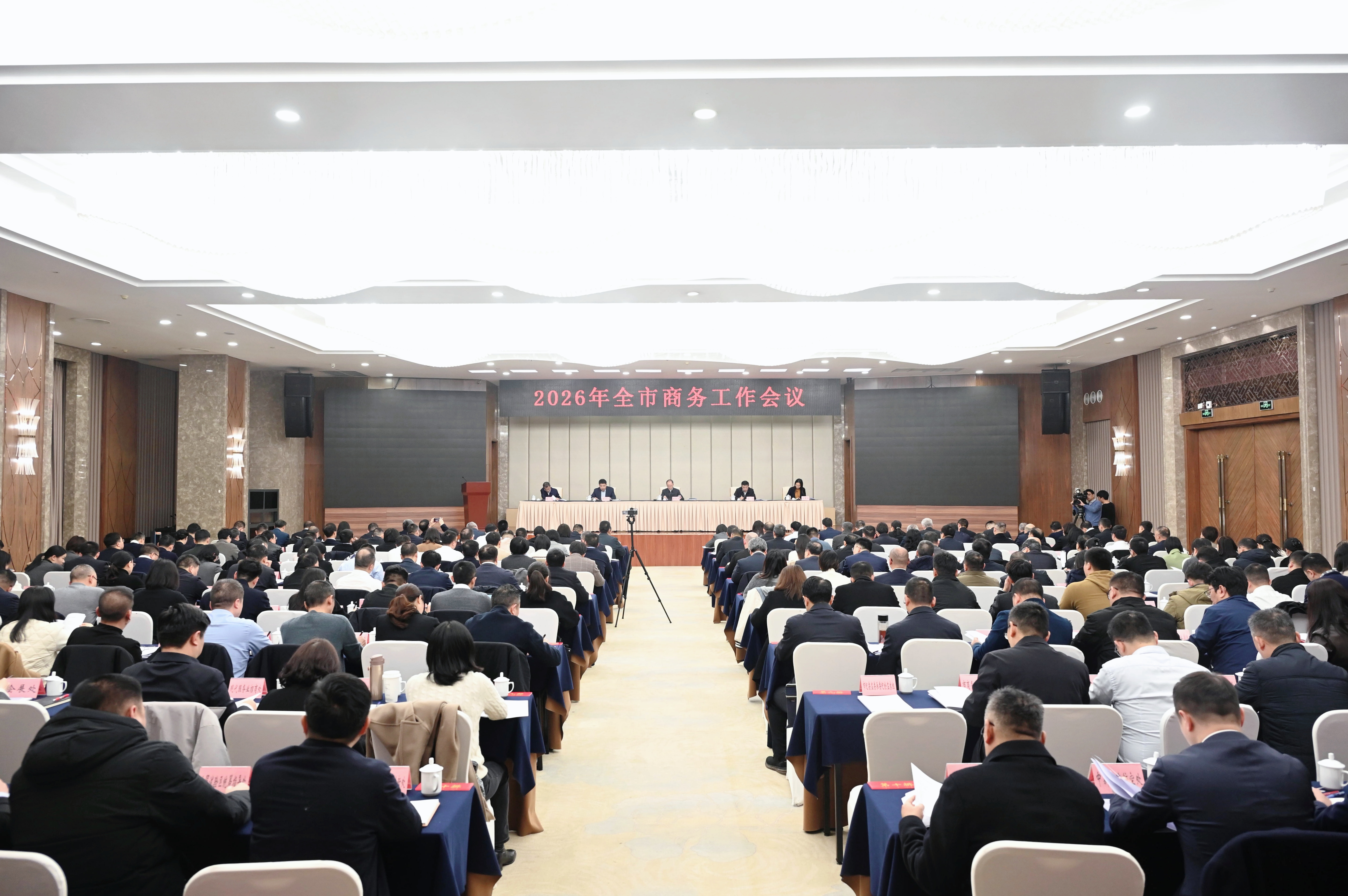 会议强调,2026年是“十五五”开局之年。全市商务系统要坚定信心、用好优势、不惧挑战,自觉把思想和行动统一到党中央的科学判断上来,进一步深化对新时代商务工作的理解与认识,坚持有效市场和有为政府结合,推动多跨协同融合发展,让商务发展成果为更多群众共享。要围绕市委、市政府明确的“五要”目标和全国商务工作会“五个坚持”要求,迭代升级“6655”行动,以全市商务经济的“稳”和“进”为全市高质量发展提供坚实支撑。一是重点实施“商品消费提质工程、服务消费扩容工程、新型消费培育工程、数字消费升级工程、农村消费提振工程”,打响“重庆消费”品牌。二是聚焦“突出稳规模、调结构,稳定扩大货物贸易;突出拓空间、优生态,创新发展服务贸易数字贸易;突出挖潜力、增动能,培育壮大外贸新业态新模式;突出抗风险、强韧性,拓展多元化国际市场”,打响“渝贸全球”品牌。三是聚力开展“重大项目招商攻坚行动、重点国别地区引资拓展行动、招商引资质效提升行动、贸易投资一体化促进行动”,打响“投资重庆”品牌。四是围绕做好“中新互联互通项目、自贸试验区、综保区经开区、服务业扩大开放试点”等四大平台,打造内陆开放综合枢纽。五是突出建好“党建引领工作体系、创新数智生态体系、行业治理迭代体系、企业服务保障体系、联动协作共进体系、商务人才引育体系”等六大体系,激发商务发展动力活力。