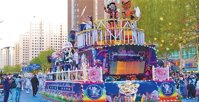 傍晚时分,青海西宁市城北区豹街开启花车巡游。本报记者 曹继炜摄