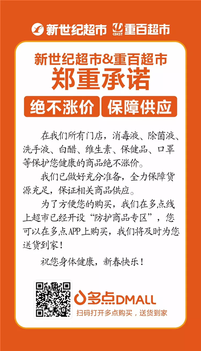重百、新世纪承诺:防护、生鲜商品绝不涨价