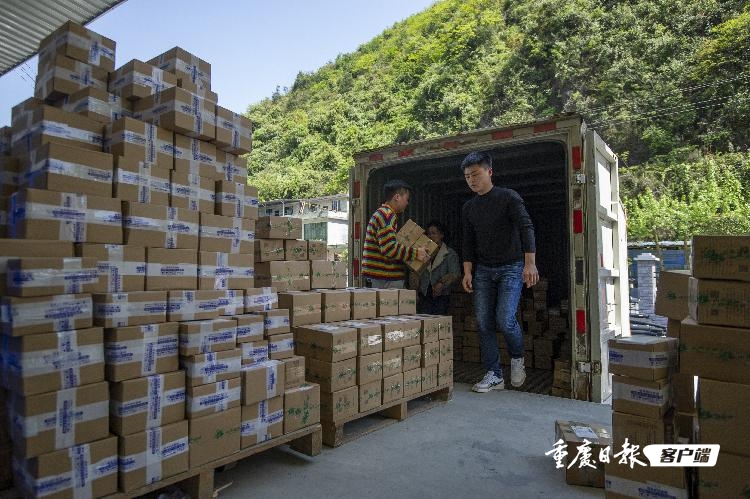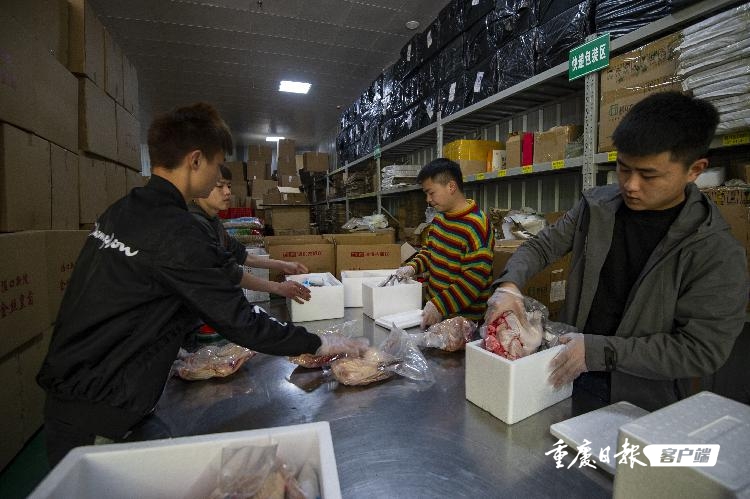 ▲隘口镇农村电商集配中心创业青年在打包秀山土鸡