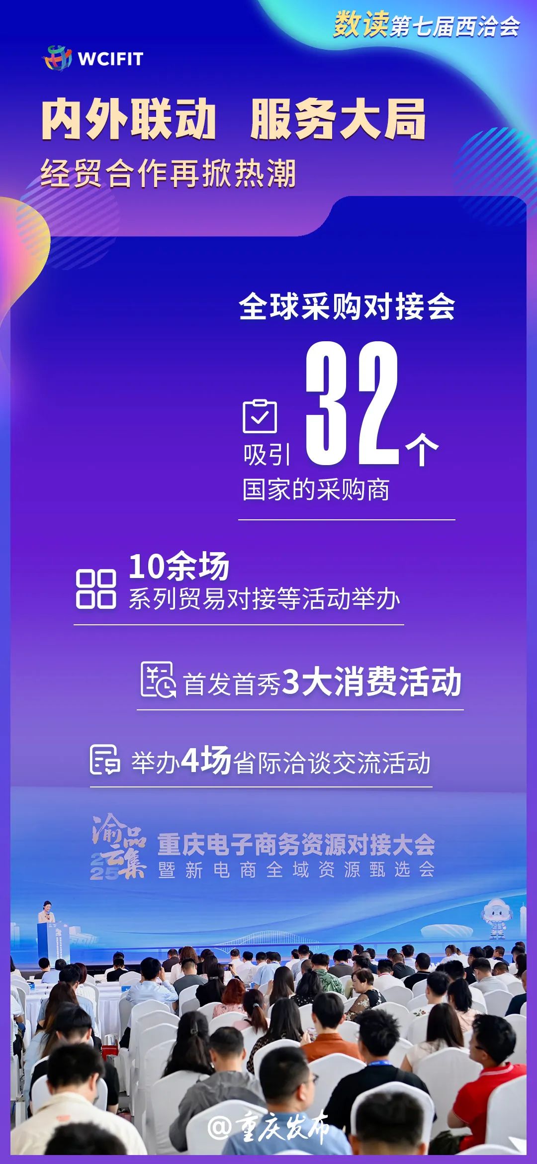 展会效果超出预期。入场人数持续增加,此次西洽会共吸引到6.2万人次入场参展参会、参观消费,比第六届增长约1万人次,其中专业观众约7000人次、展商约6000人次、社会观众近5万人次。消费促进成效明显,全球数千种特色商品供市民挑选,荣昌卤鹅、丰都麻辣鸡现场销售额分别达60万元和70万元。