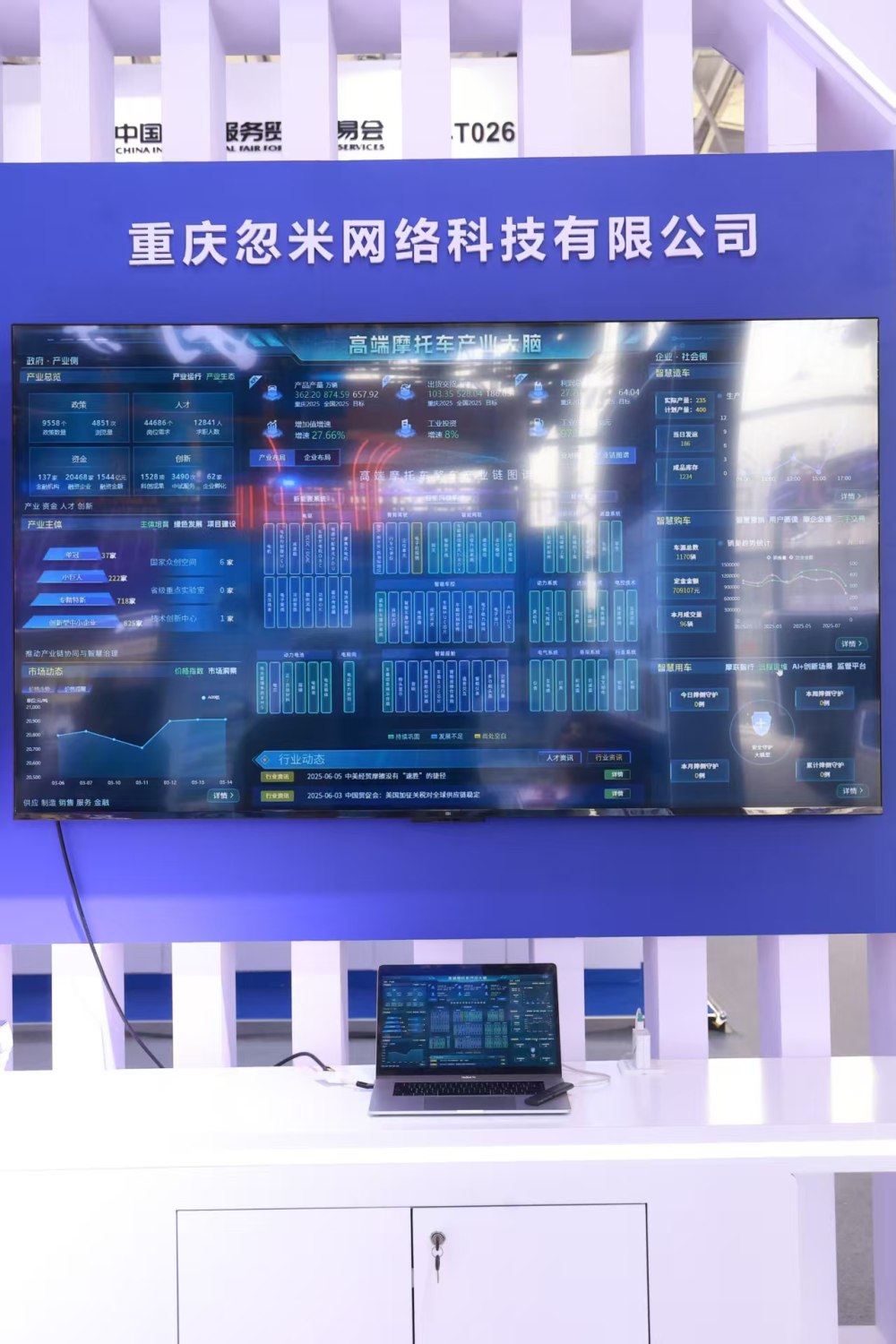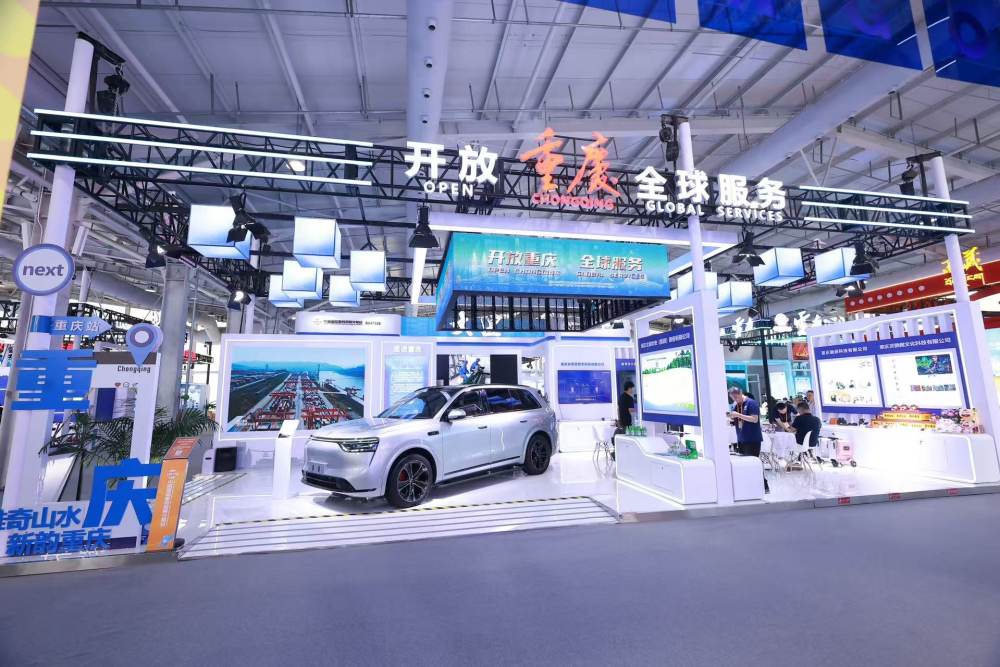 据了解,本次服贸会上的重庆馆面积100㎡,以“开放重庆,全球服务”为主题,携智能制造、数字贸易、中医药等领域的创新成果亮相。整体设计通过科技感与巴渝文化的创新融合,以蓝白主色调与地标剪影的设计语言,生动诠释了重庆作为“国际贸易枢纽”的城市定位,展现重庆作为内陆开放高地和国际服务枢纽的现代化形象。