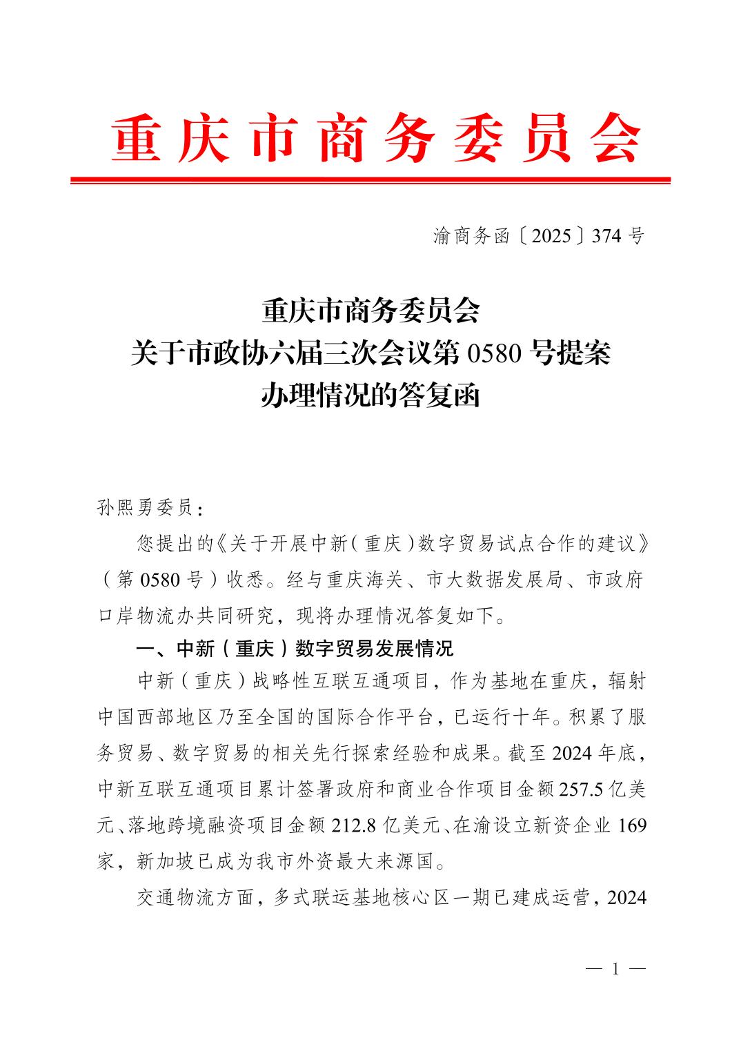 | [ 发文字号 ] | 渝商务函〔2025〕374 号 |