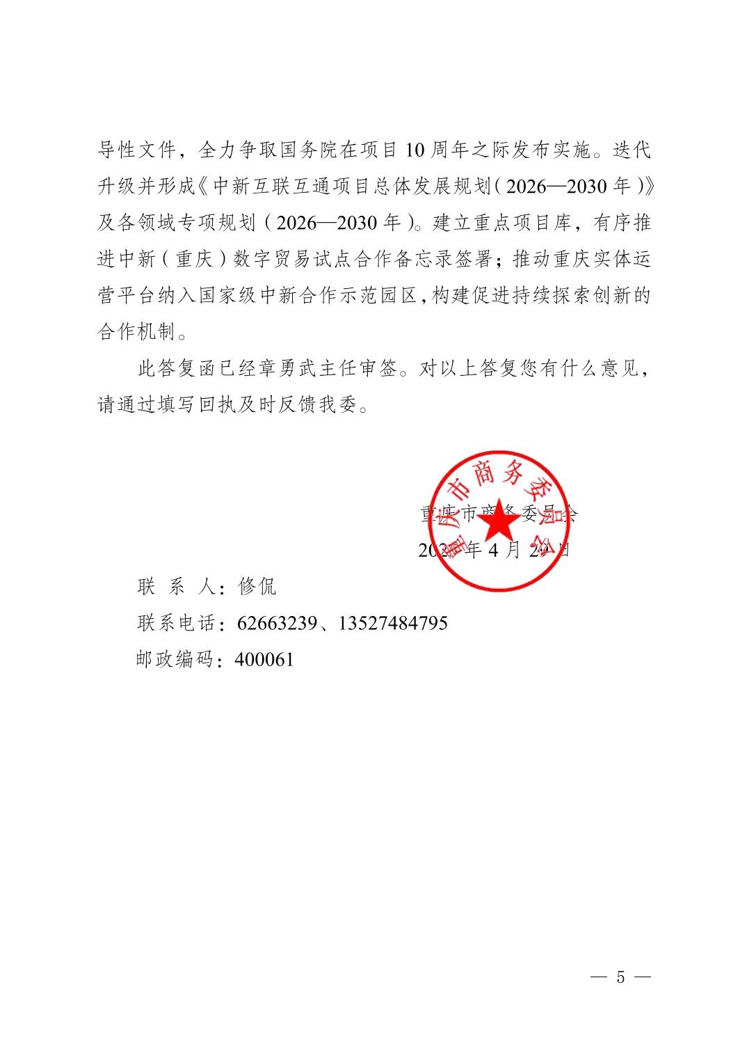 重庆市商务委员会关于市政协六届三次会议第 0580 号提案办理情况的答复函