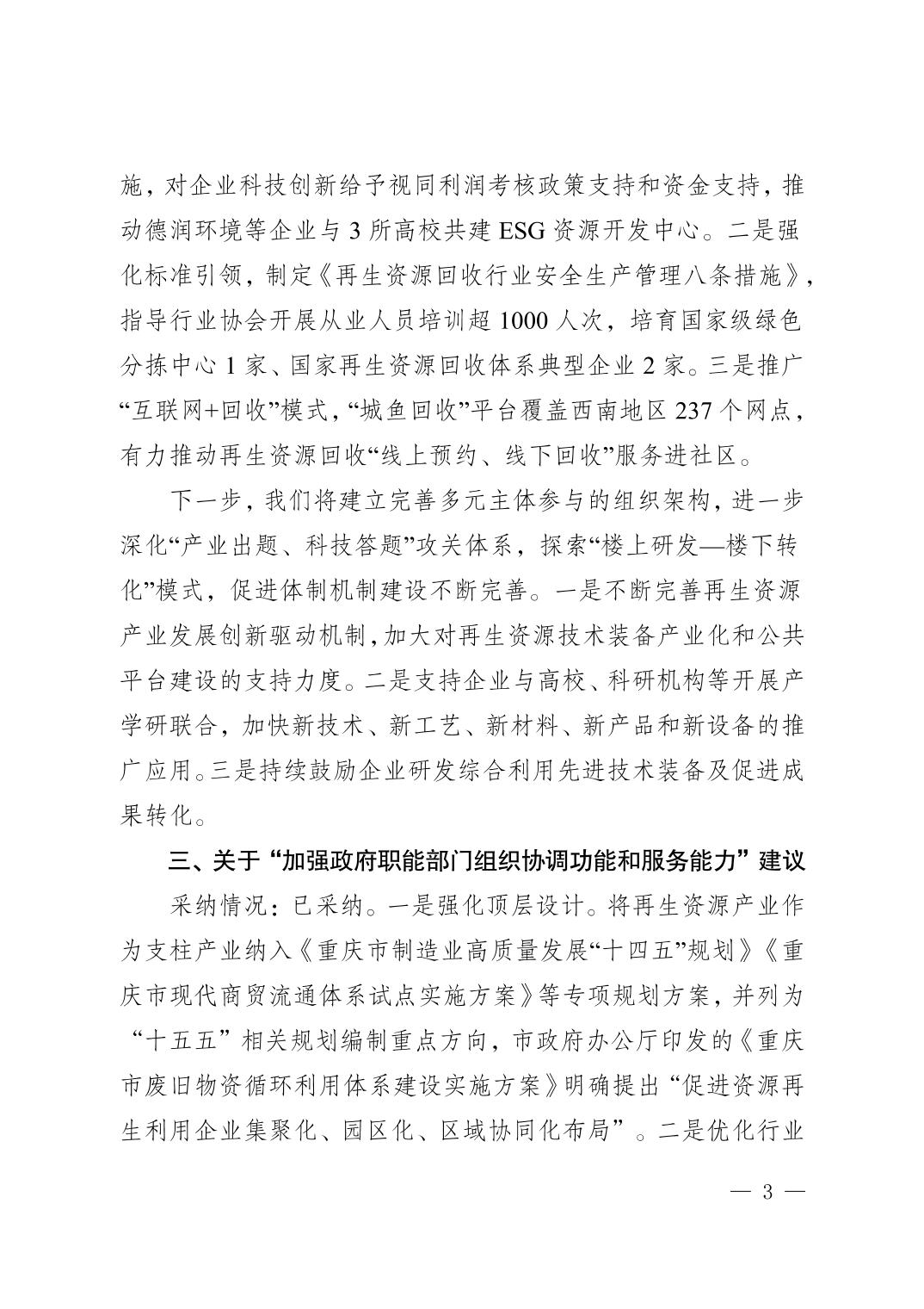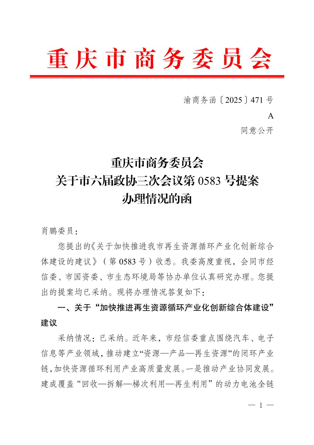 重庆市商务委员会关于市六届政协三次会议第 0583 号提案办理情况的函