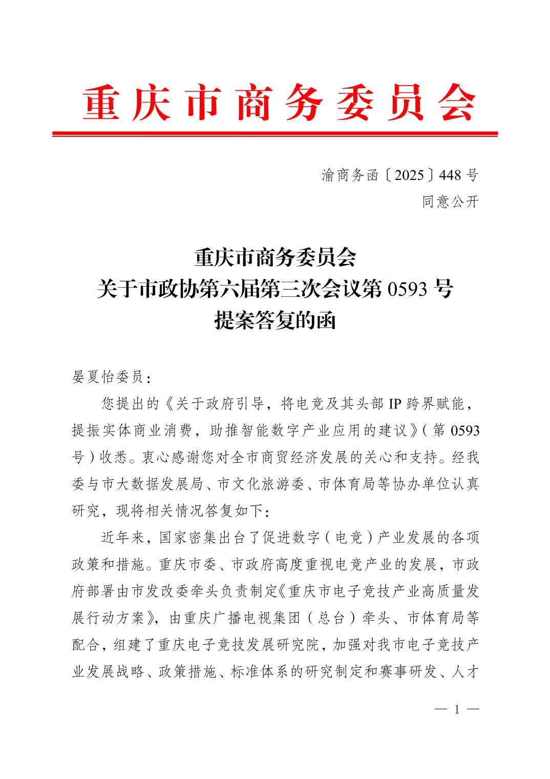| [ 索引号 ] | 11500000MB0W8117XN/2025-00535 | [ 发文字号 ] | 渝商务函〔2025〕448 号 |
