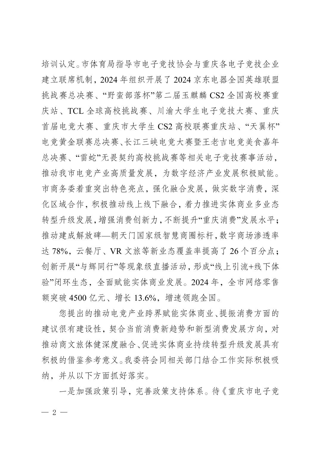 重庆市商务委员会关于市政协第六届第三次会议第 0593 号提案答复的函