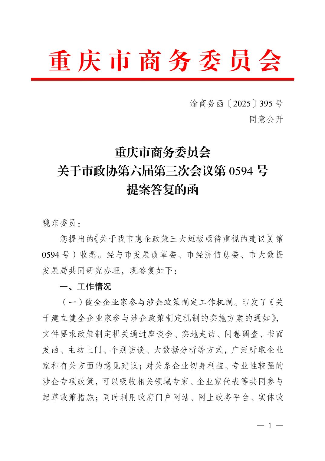 | [ 发文字号 ] | 渝商务函〔2025〕395 号 |