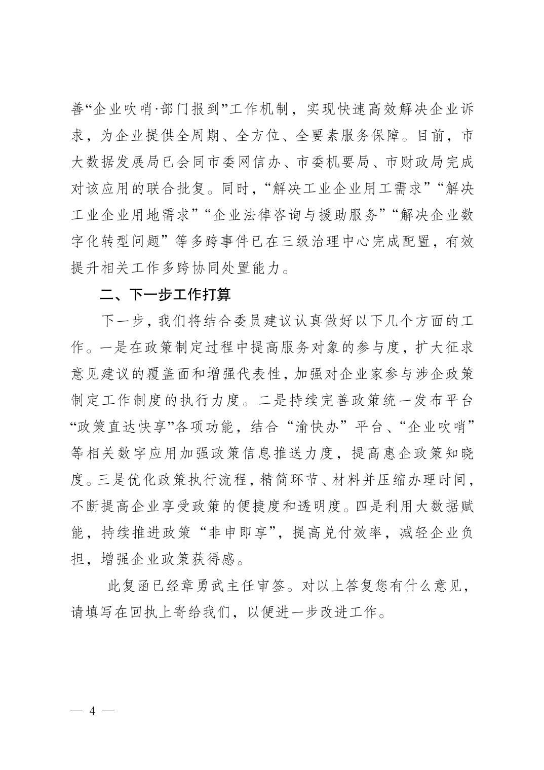 重庆市商务委员会关于市政协第六届第三次会议第 0594 号提案答复的函