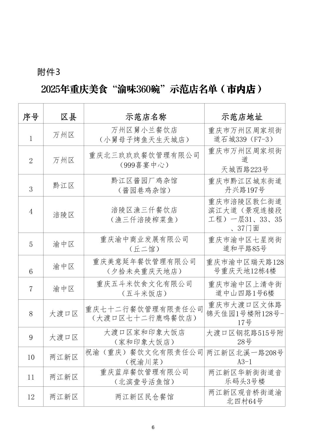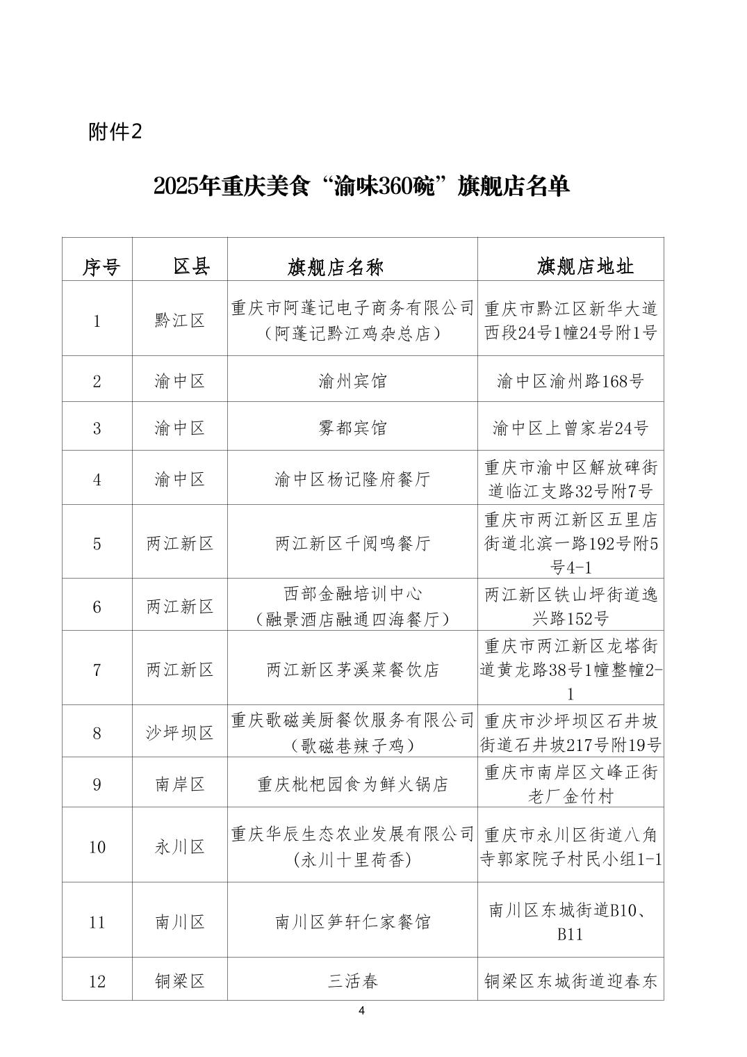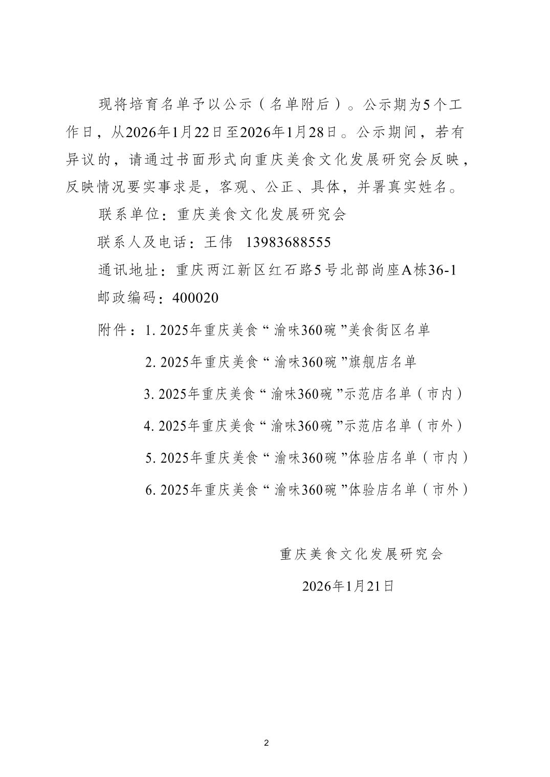 关于2025年重庆美食“渝味360碗”体验店、示范店、旗舰店、美食街区培育名单的公示