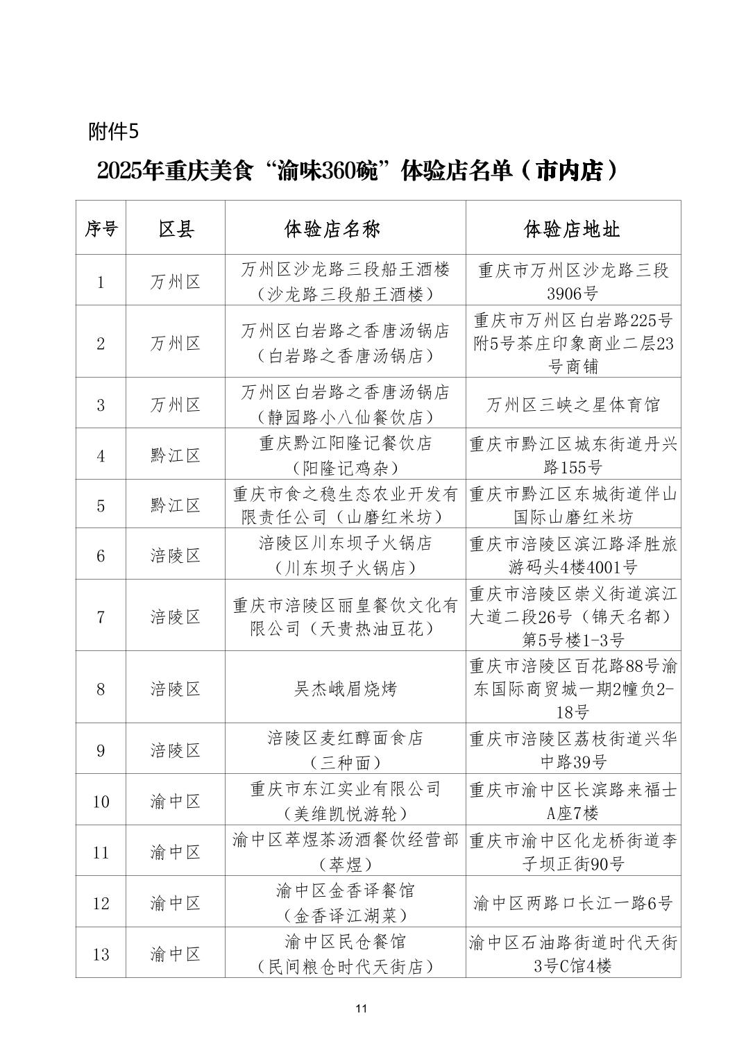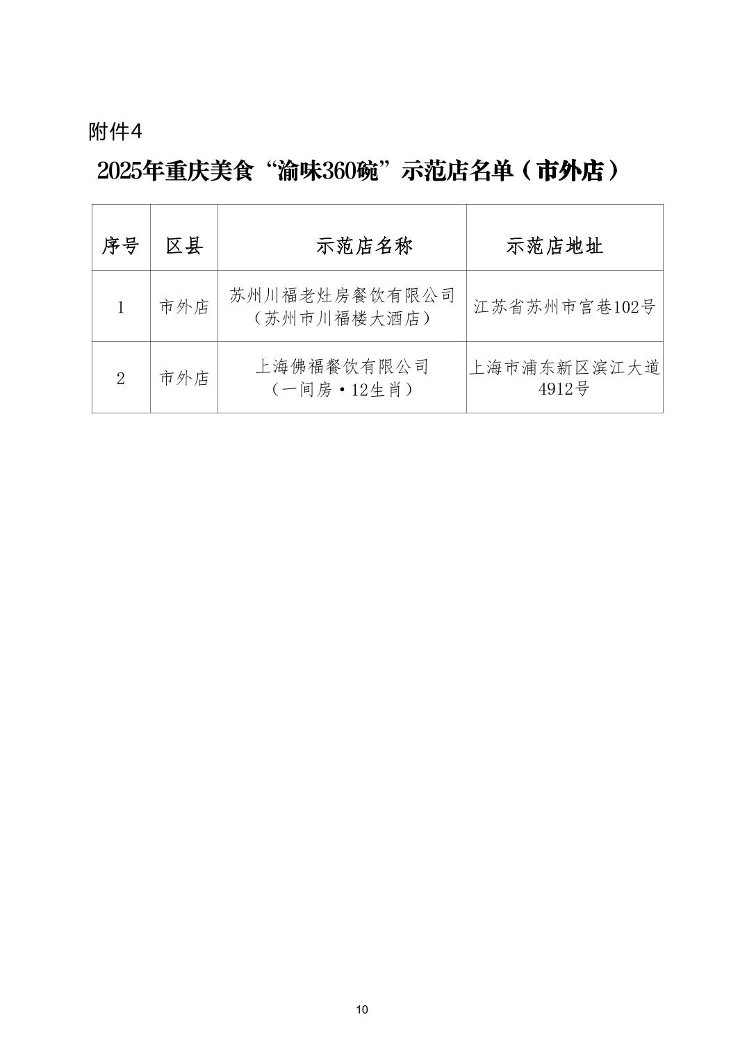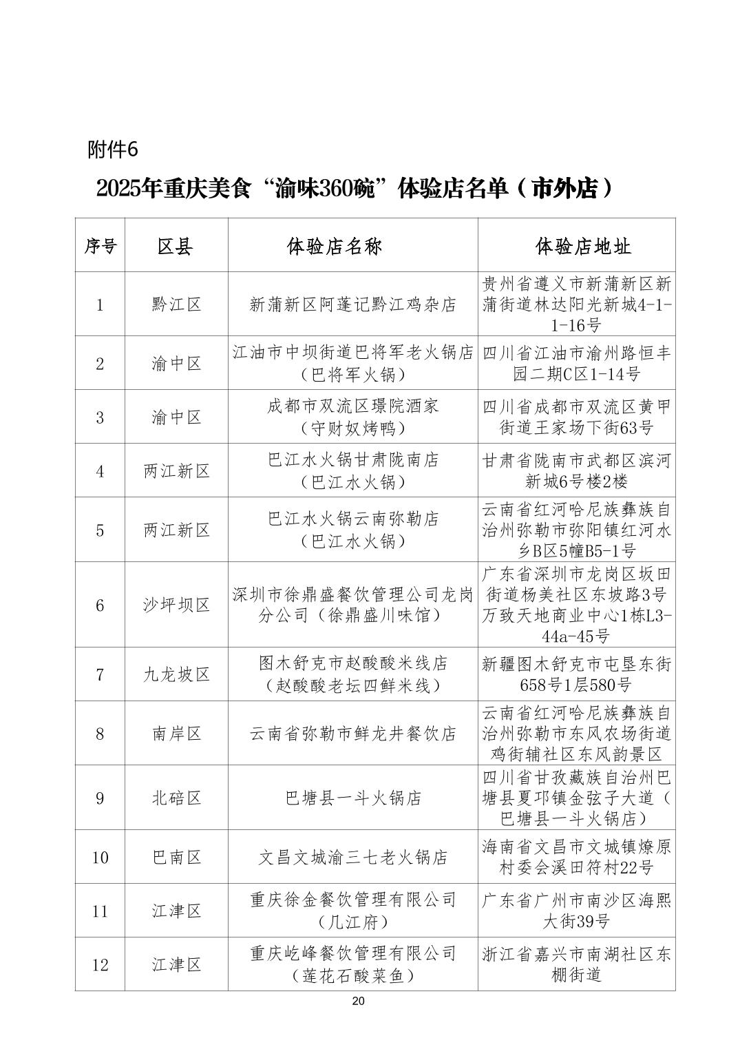 关于2025年重庆美食“渝味360碗”体验店、示范店、旗舰店、美食街区培育名单的公示