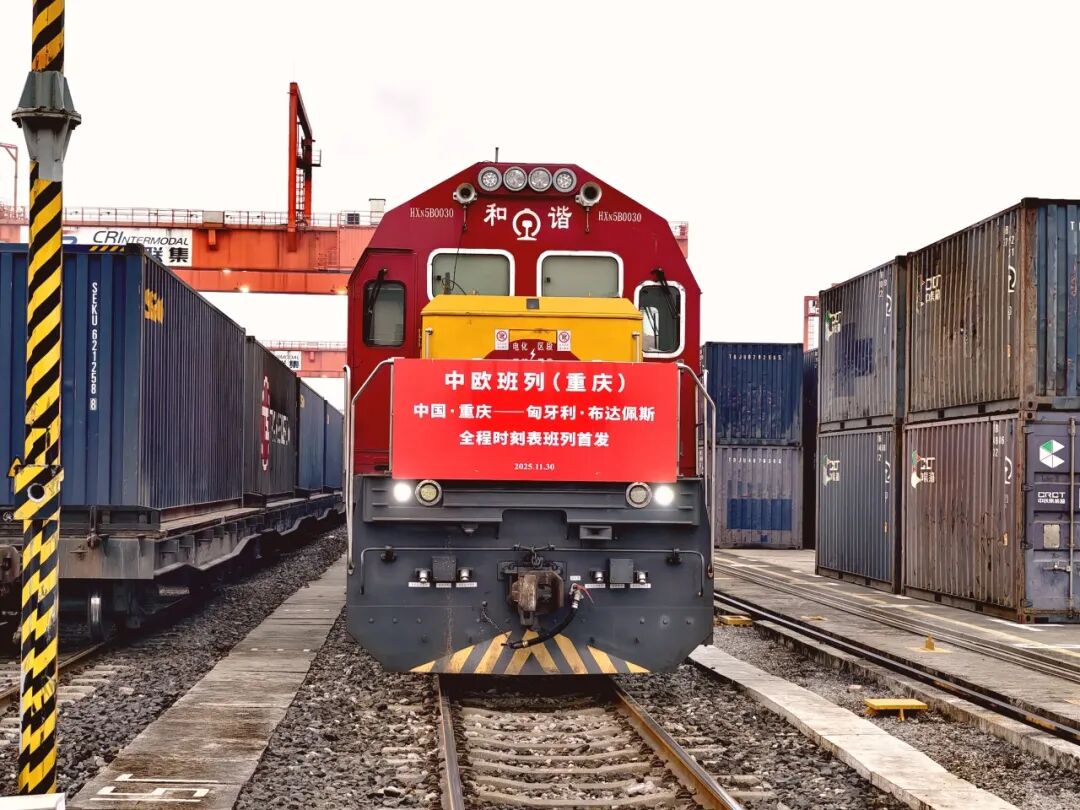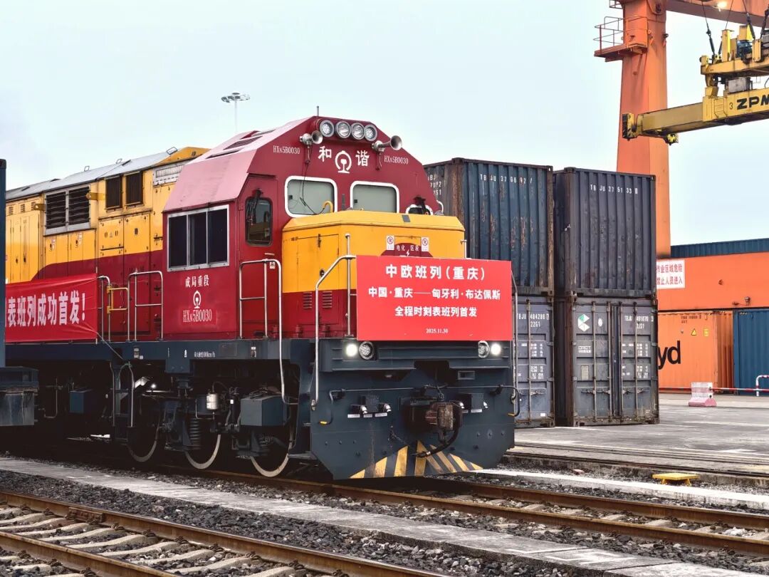 11月30日,一列满载汽摩配件、电子信息及日用百货等产品的中欧班列从重庆团结村中心站鸣笛启程,驶向匈牙利首都布达佩斯。这标志着重庆—布达佩斯全程时刻表中欧班列正式开行,成为继2024年6月重庆—德国杜伊斯堡线路实现双向贯通后,重庆获批的第二条全程时刻表中欧班列线路,也是全国第四批全程时刻表线路的重要组成部分。