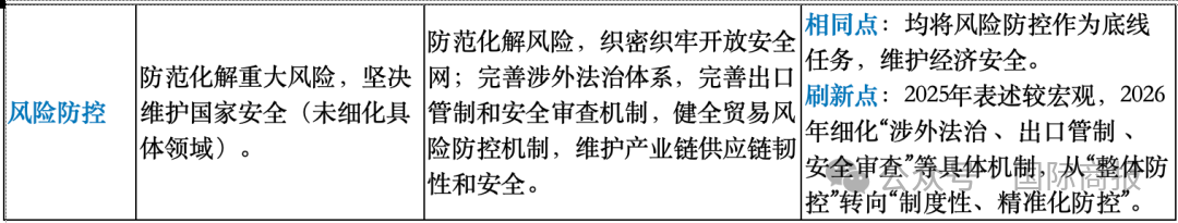 完善涉外法治体系,完善出口管制和安全审查机制,健全贸易风险防控机制,维护产供链韧性和安全。