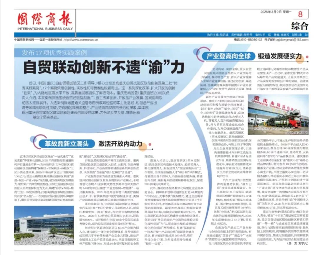 永川高新区(永川综保区)联动创新区全国首创汽车KD件“卡口分散登记自动核放入区,成套归类集中统一报关”模式,为企业节省物流成本30%。2025年KD件出口贸易额达14亿元,同比增长600%。该经验吸引全国10余个综保区前来考察交流,成为综保区制度型开放的标杆样本。