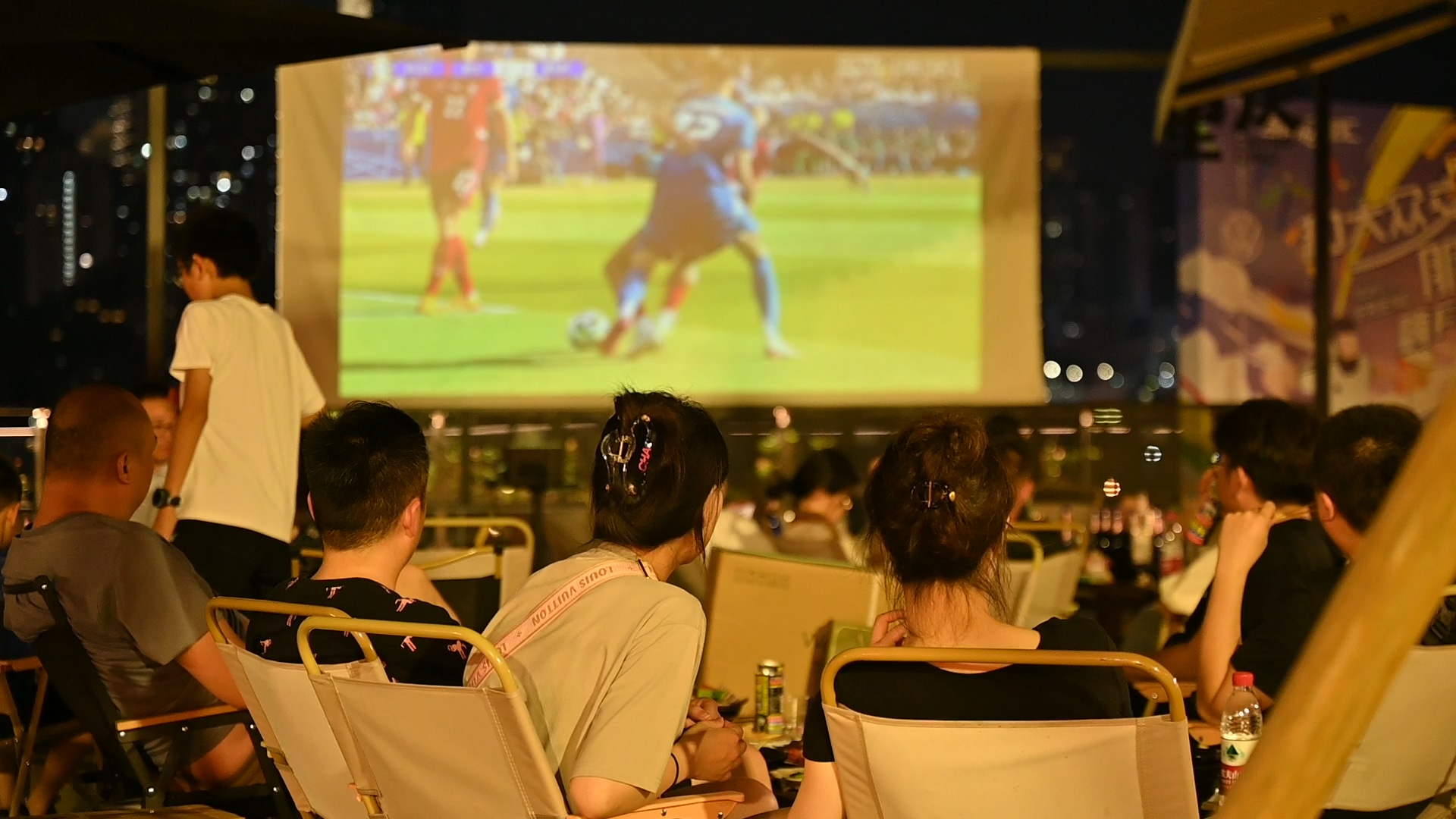 ▲市民在南滨路露天平台看欧洲杯。记者 周奇 摄