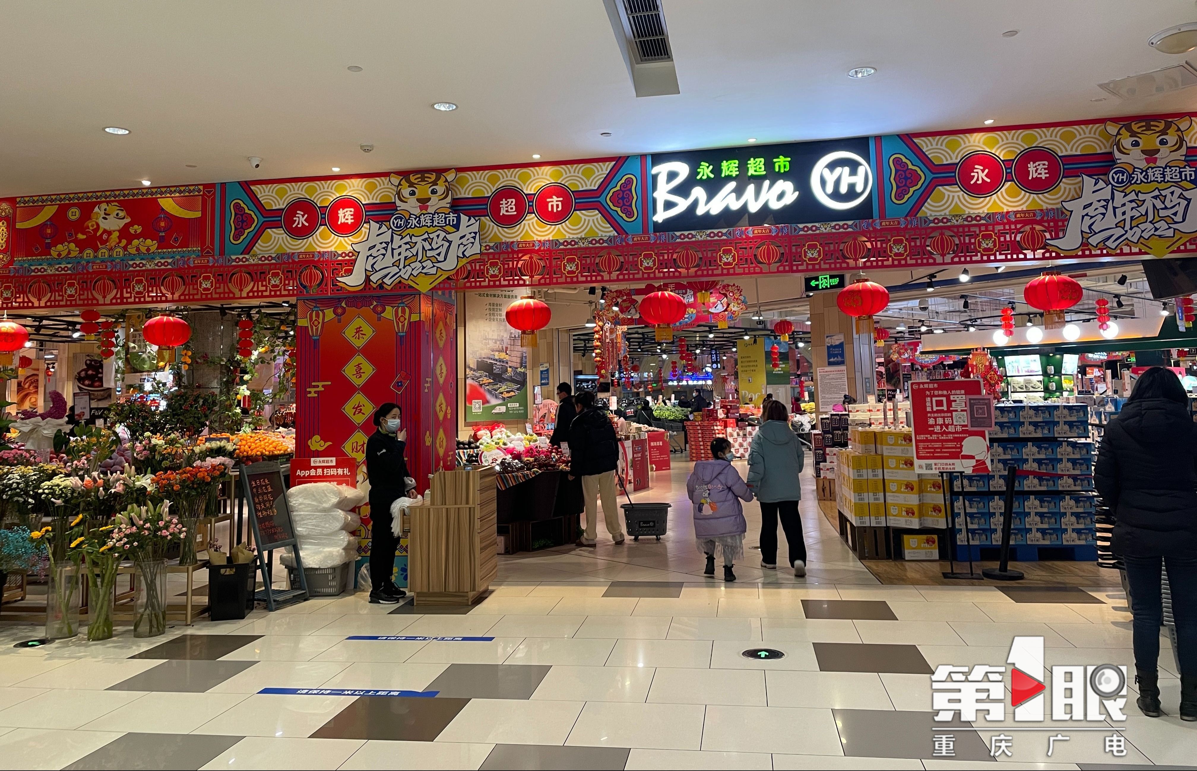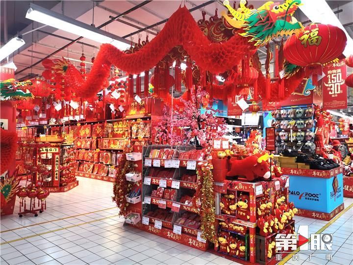针对春节消费旺季,重庆各大商圈以及商场、超市、品牌连锁店等商贸流通企业提前策划宣传,备足货源,营造和谐喜庆的购物环境。茂业百货推出“开门红-年货狂购”节,永辉超市、沃尔玛、重百等大型超市组织虎年不马虎“囤年货、过好年”等活动,推出城口老腊肉礼盒、坚果礼盒、食用油、南北干货等特价商品。节日期间,重百、永辉等超市销售额同比分别增长5.5%、4.5% 。