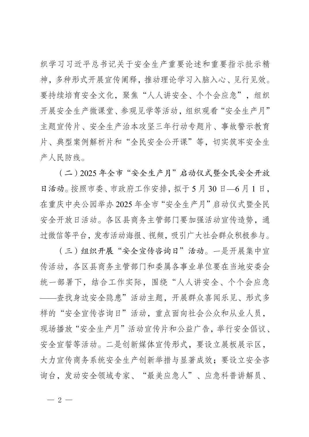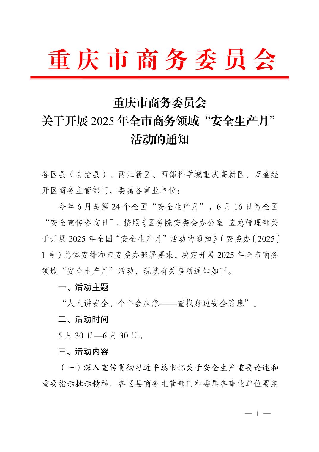重庆市商务委员会关于开展2025年全市商务领域“安全生产月”活动的通知