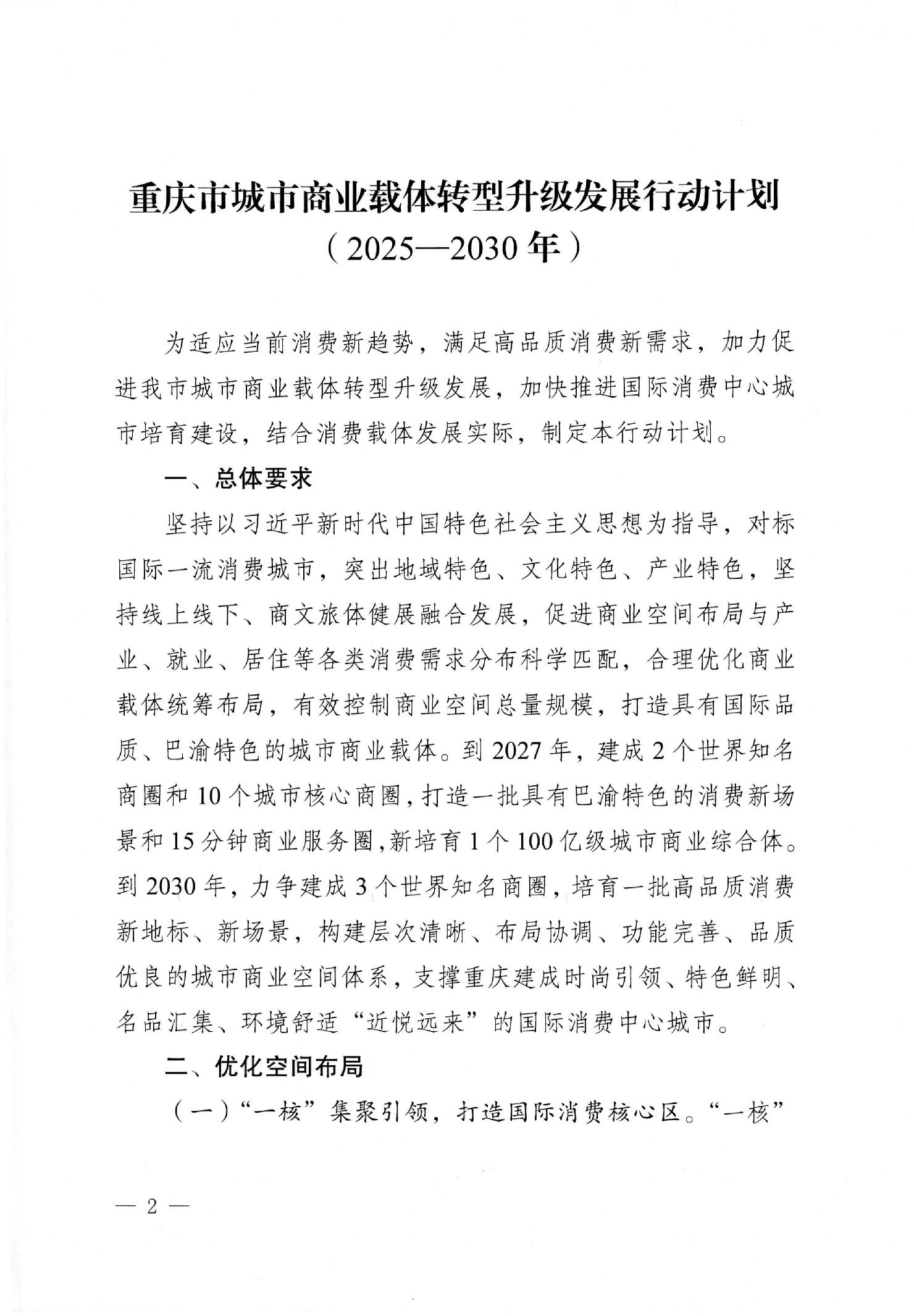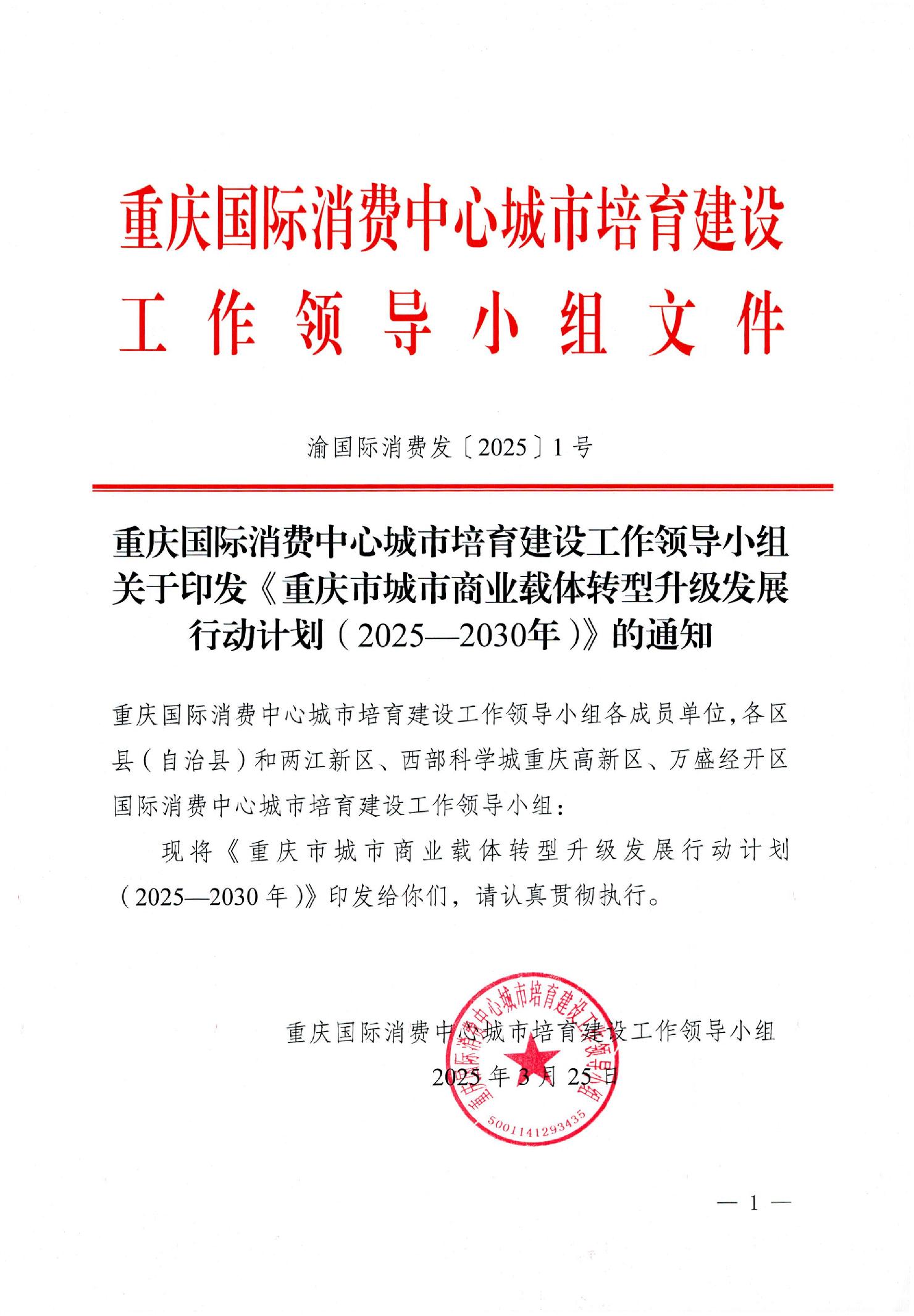 重庆国际消费中心城市培育建设工作领导小组关于印发《重庆市城市商业载体转型升级发展行动计划(2025——2030))》的通知