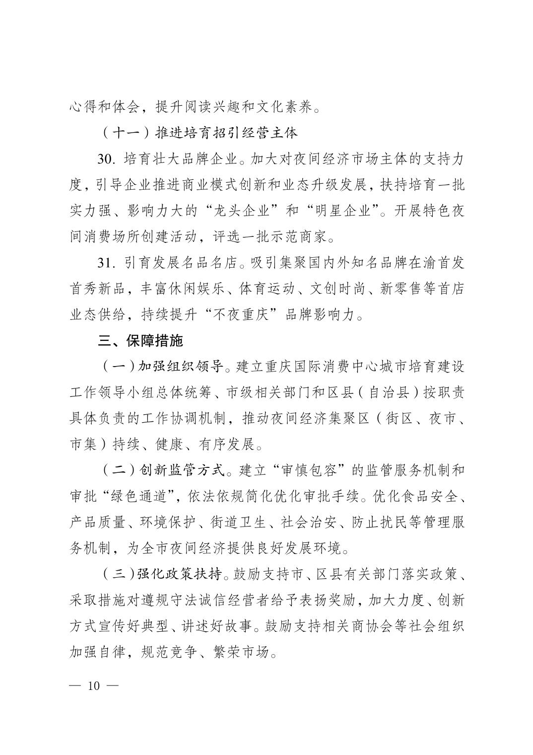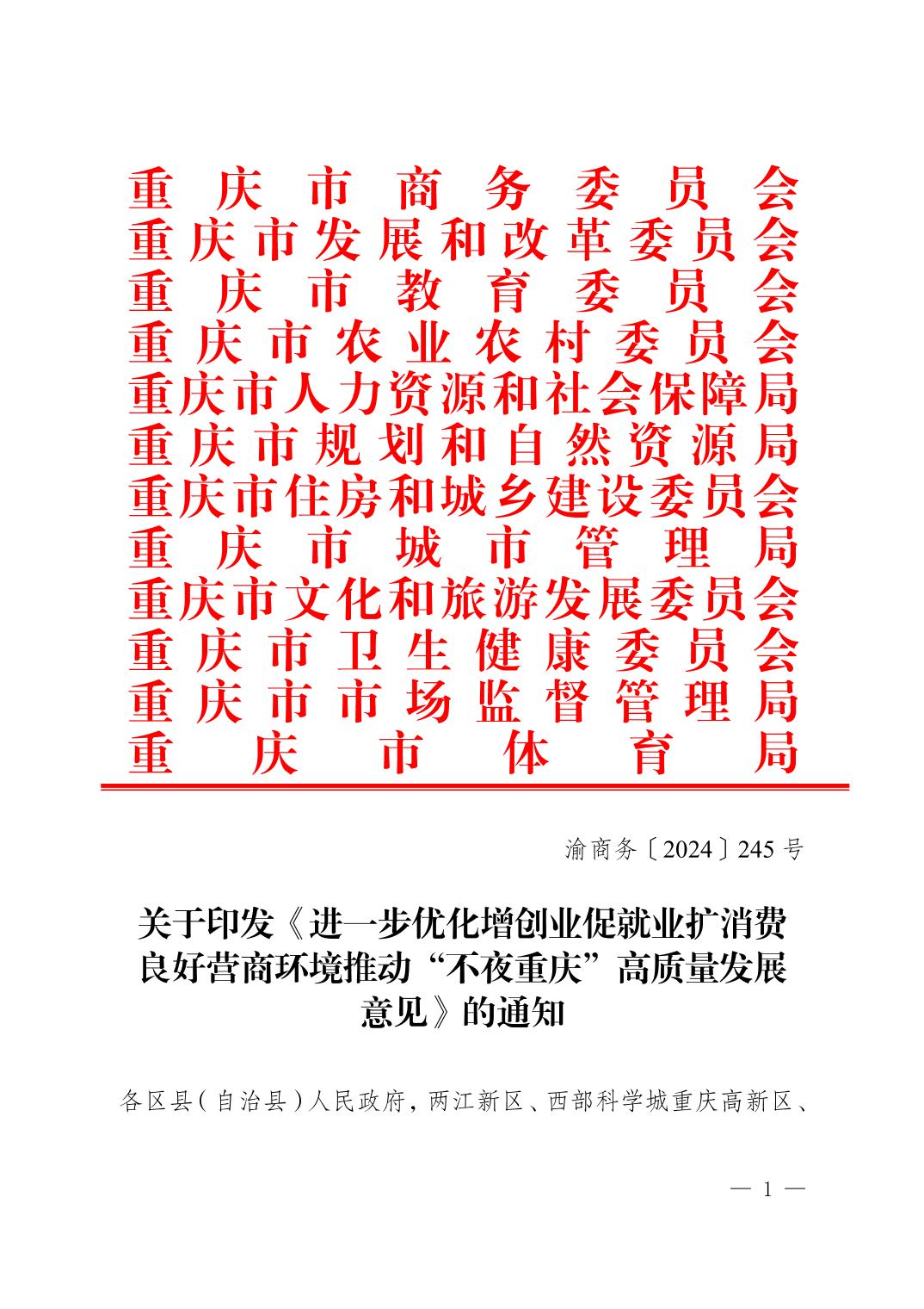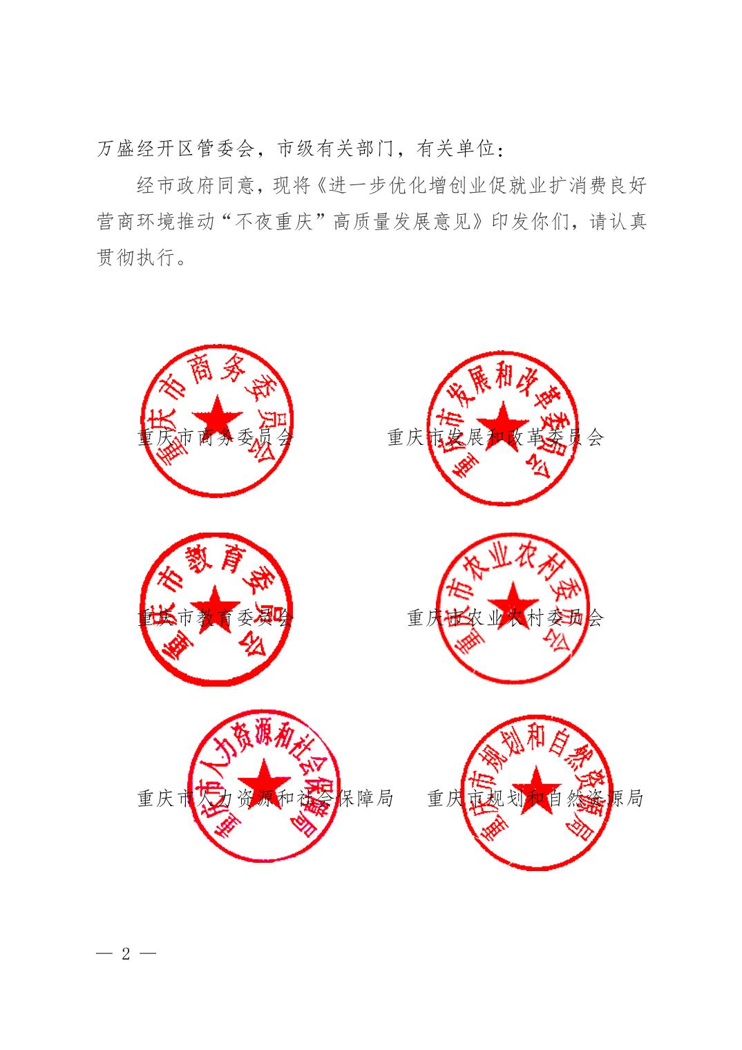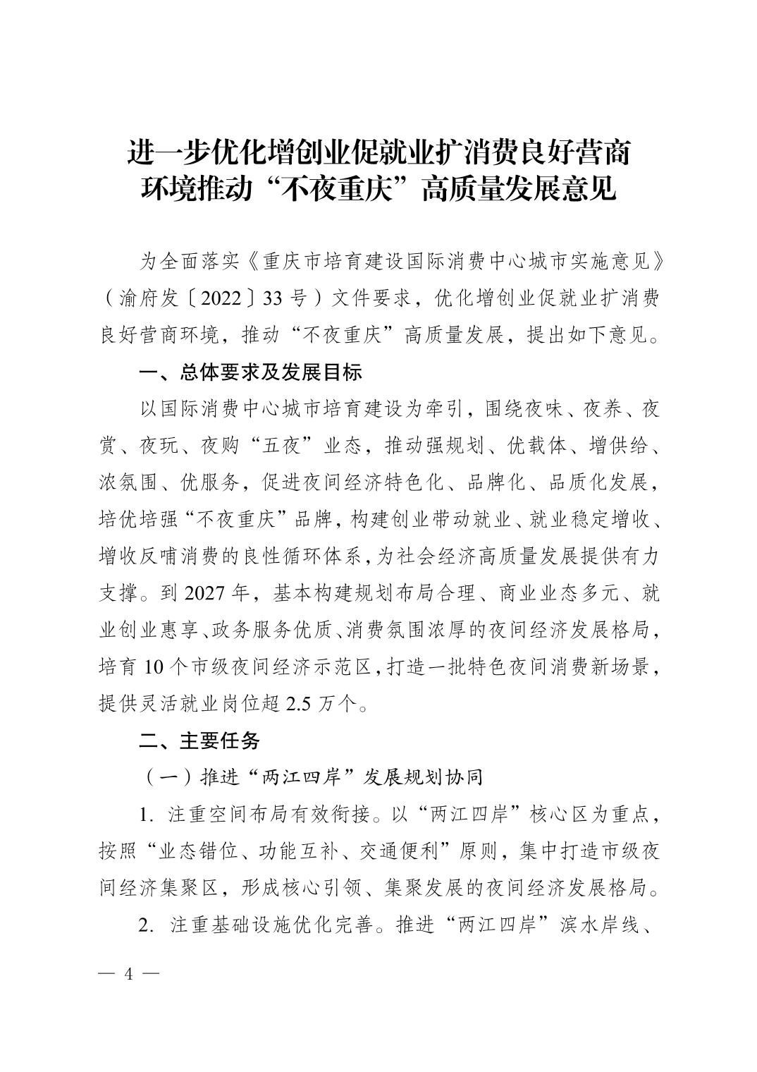 关于印发《进一步优化增创业促就业扩消费良好营商环境推动“不夜重庆”高质量发展意见》的通知