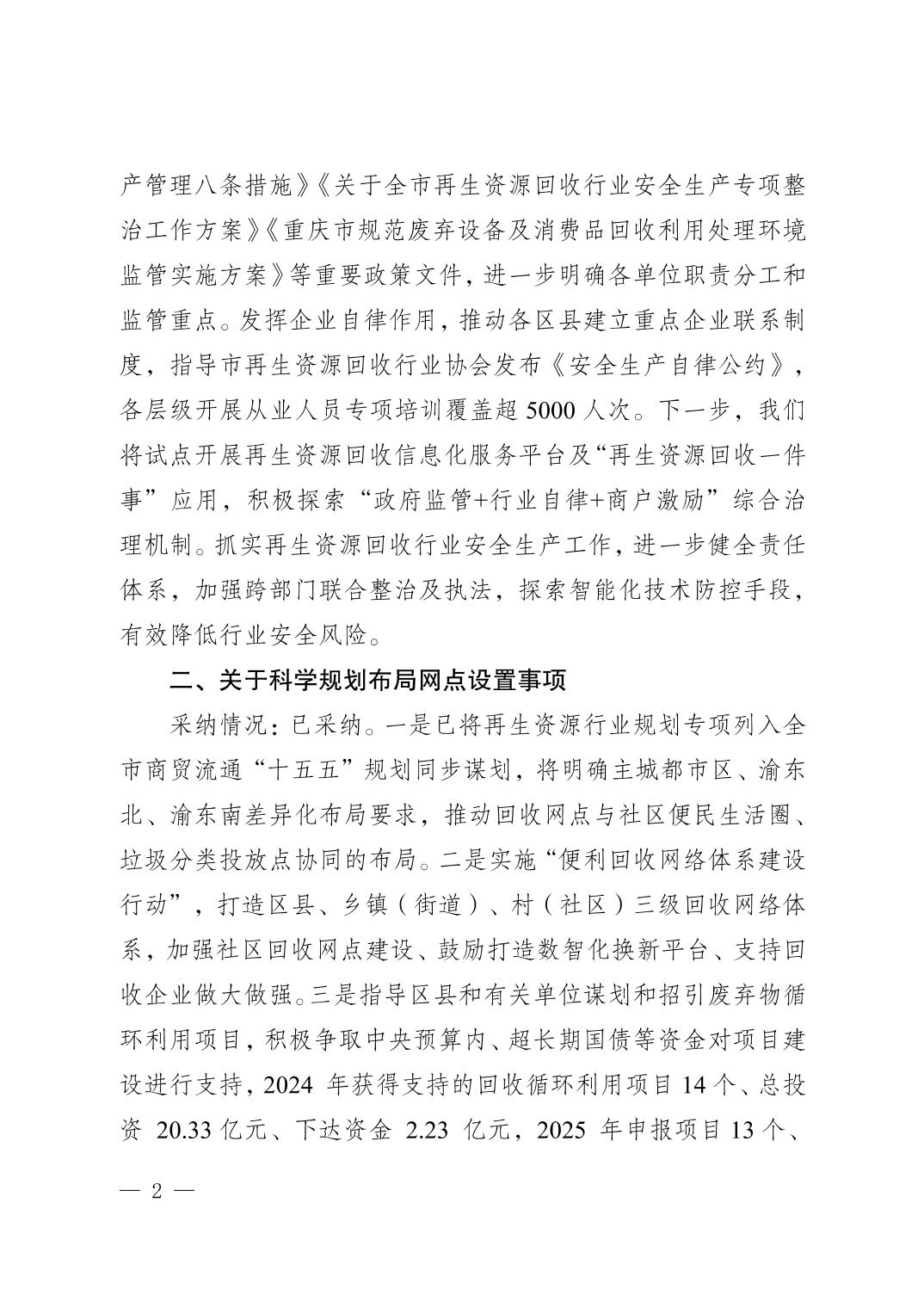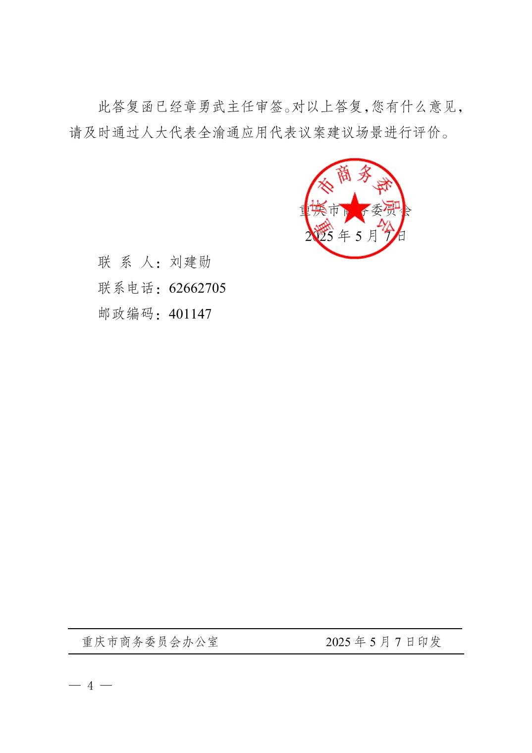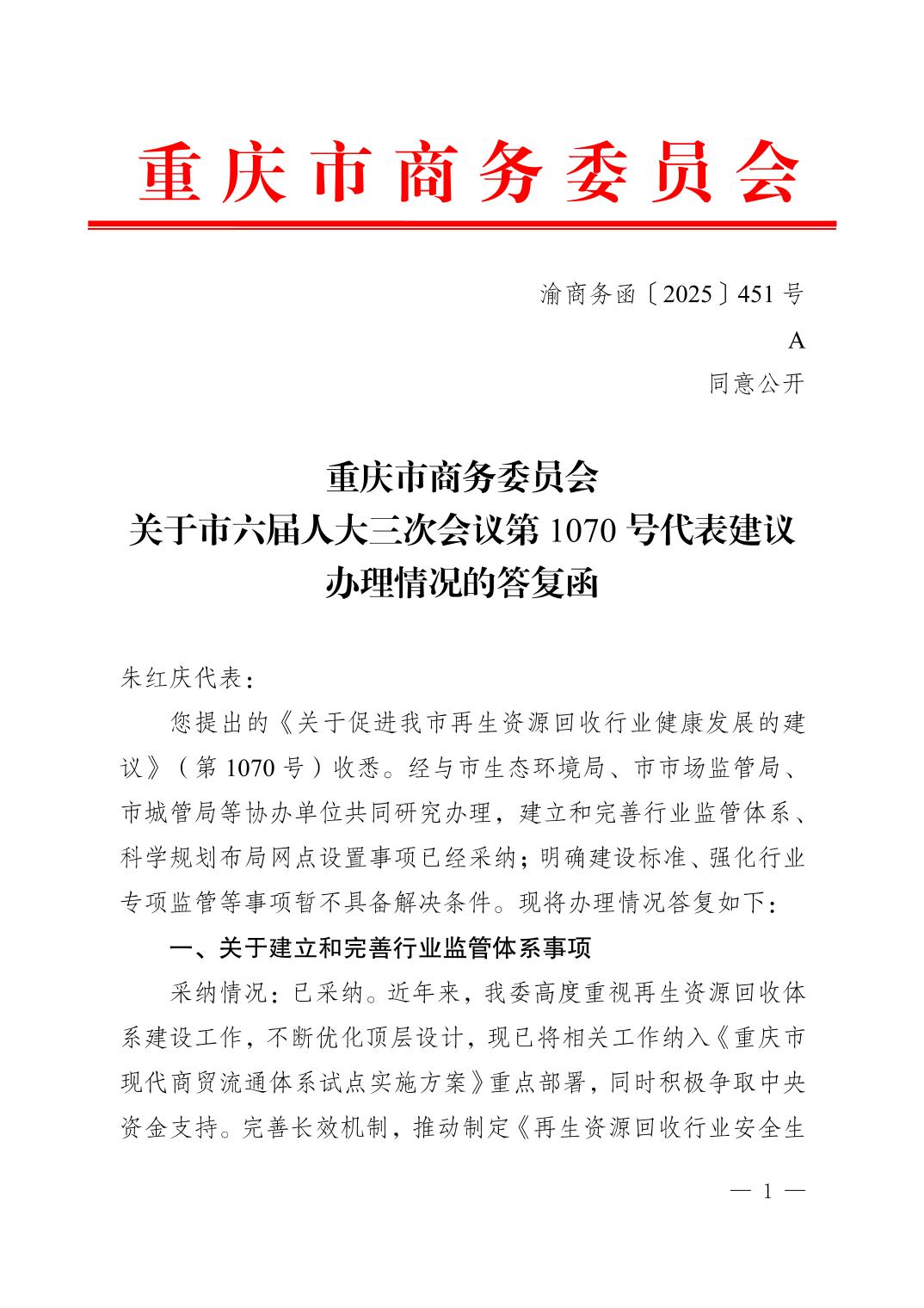 重庆市商务委员会关于市六届人大三次会议第 1070 号代表建议办理情况的答复函