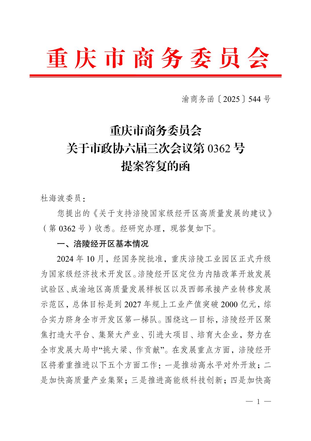 | [ 索引号 ] | 11500000MB0W8117XN/2025-00499 | [ 发文字号 ] | 渝商务函〔2025〕544 号 |