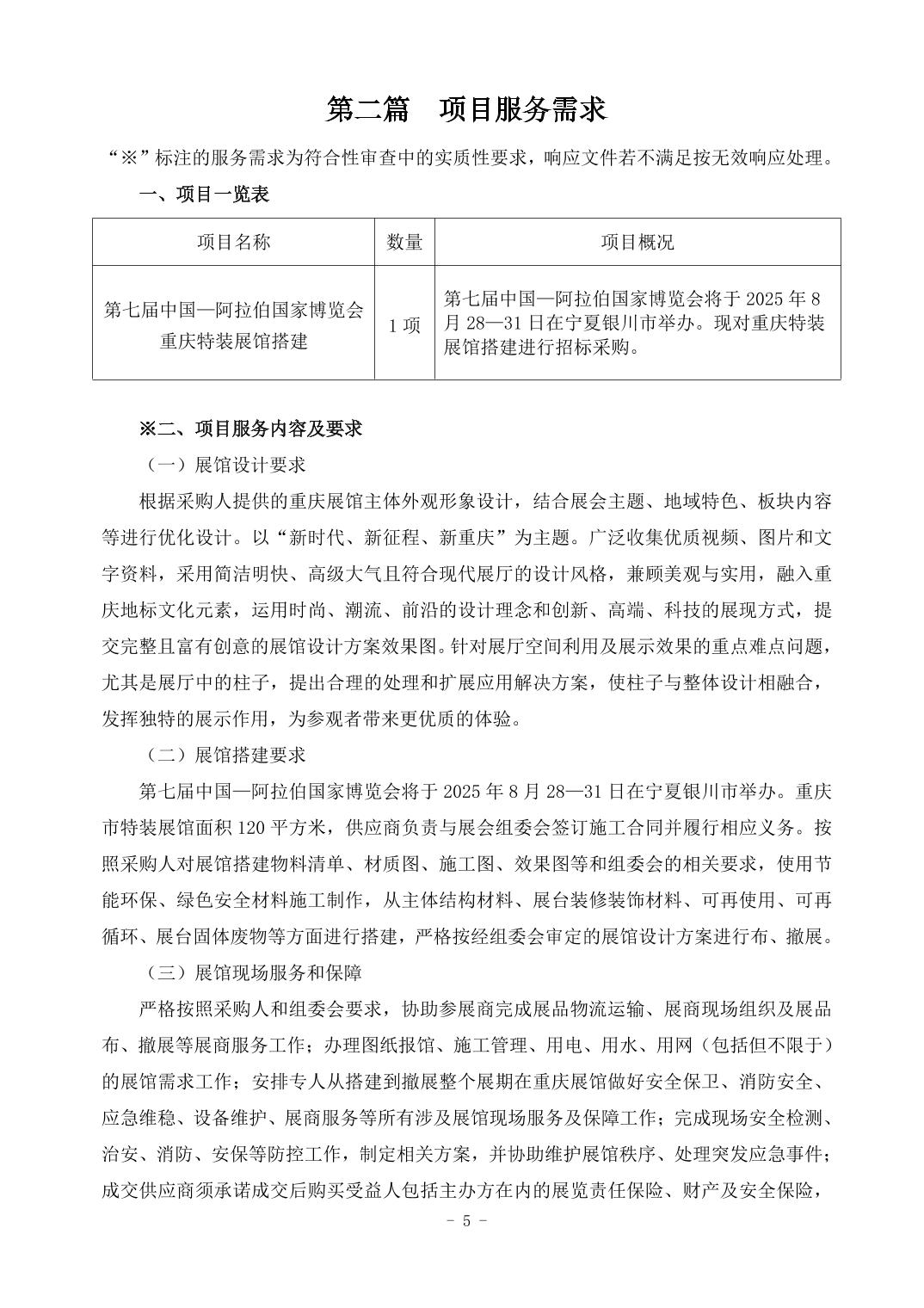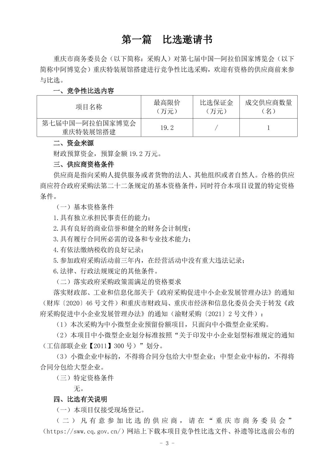 第七届中国—阿拉伯国家博览会重庆特装展馆搭建竞争性比选文件