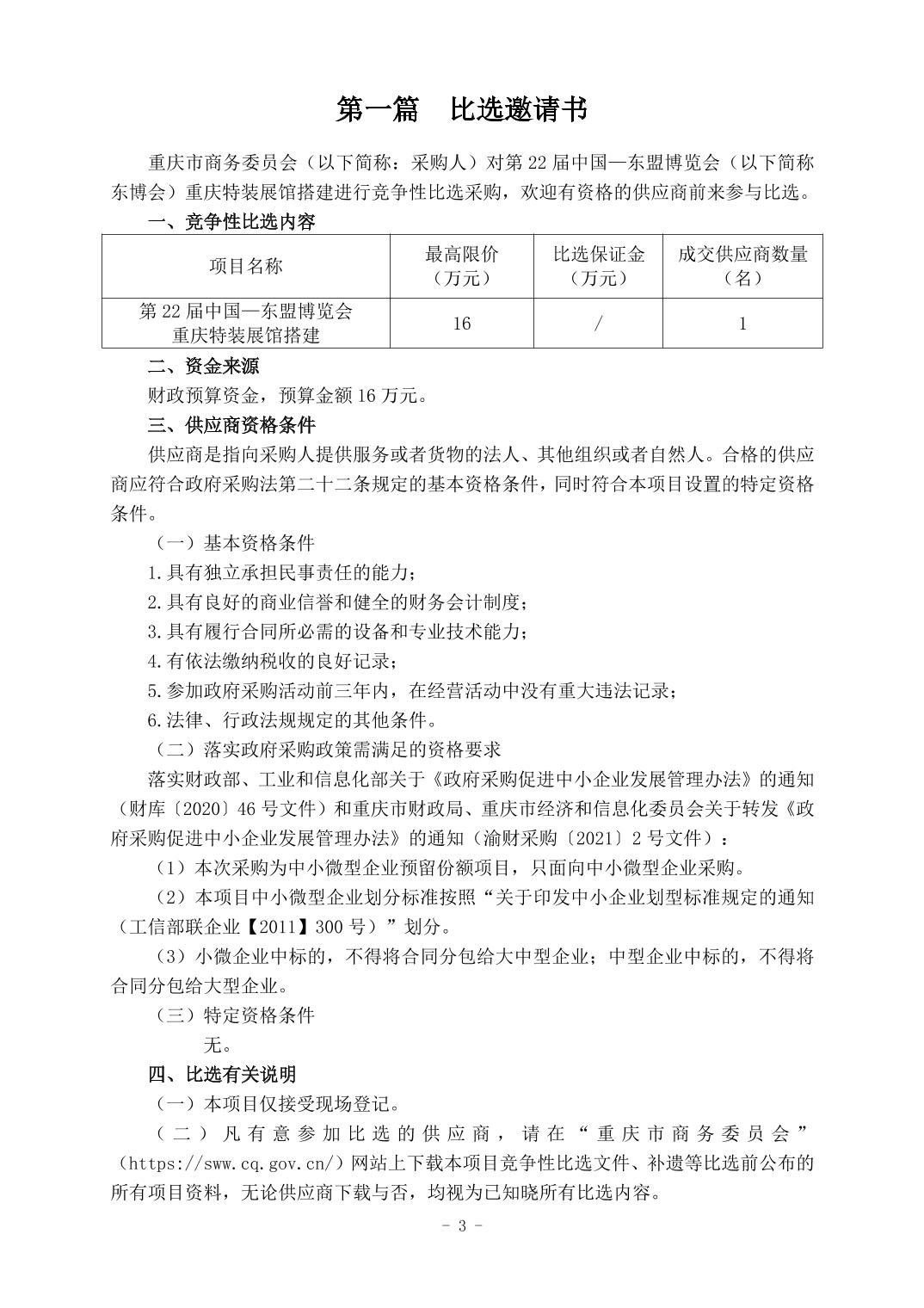 第22届中国—东盟博览会重庆特装展馆搭建竞争性比选文件