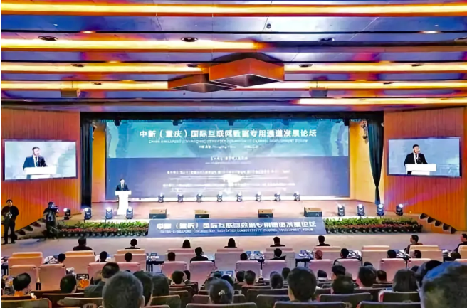 ▲2019年11月21日,渝北区仙桃数据谷,中新(重庆)国际互联网数据专用通道发展论坛现场。资料图
