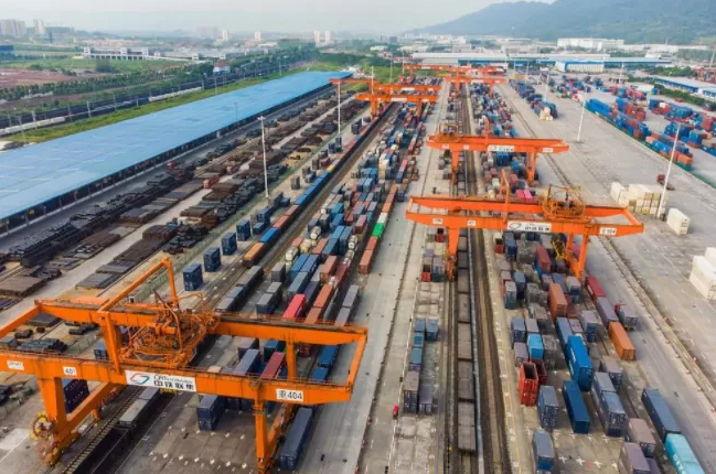 ▲重庆国际物流枢纽园区团结村铁路中心站,西部陆海新通道和中欧班列(渝新欧)班列从这里始发。 孙凯芳 摄/视觉重庆