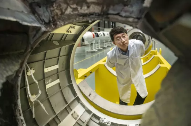 ▲两江新区重庆零壹空间,科研人员在火箭智能总装制造基地查看火箭状态。 张锦辉 摄/视觉重庆