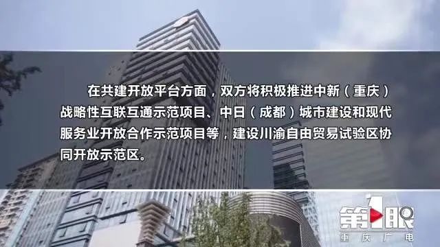 在共建开放平台方面,双方将积极推进中新(重庆)战略性互联互通示范项目、中日(成都)城市建设和现代服务业开放合作示范项目等,建设川渝自由贸易试验区协同开放示范区。充分发挥重庆通道物流和运营组织中心、成都国家重要商贸物流中心作用,积极推进西部陆海新通道建设,协同提升中欧班列(成渝)运营效能,探索陆上 国际贸易新规则。