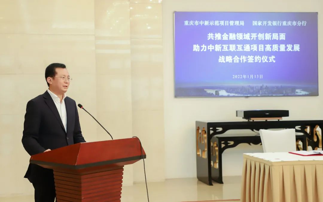 1月13日,重庆市中新示范项目管理局与国家开发银行重庆市分行签订战略合作协议,达成系列合作意向。市中新项目管理局党组书记、局长曾菁华,国家开发银行重庆市分行行长李建江以及国家开发银行研究院副院长黄子恒出席仪式并致辞。