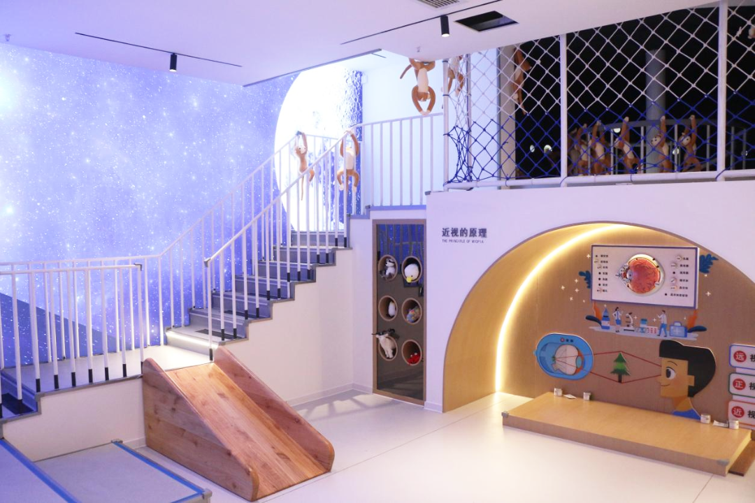 其中,青少年近视防控科普中心依托新加坡专家资源的先进经验和科技力量,融合科学、体育、文化、历史、生活等元素,利用生动有趣的互动空间和多媒体技术,让青少年“浸入式”了解眼健康有关知识,增强近视防控意识。
